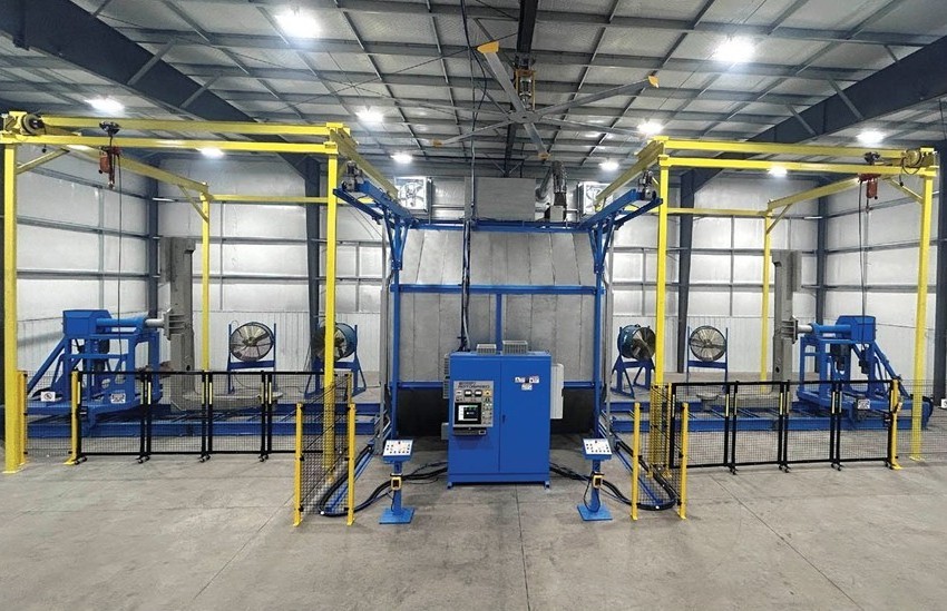 The giant shuttle machine utilizes double supported offset arm/carts and share a common oven, similar in function to Ferry’s standard size in-line shuttle machines. Each arm/cart has its own cycle programming and is driven by our industry-leading RotoCure software which can be customizable to be unique for any application